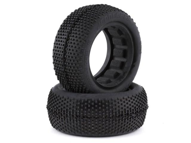 The JConcepts Double Dee's V2 2.2" 4WD 1/10 Front Buggy Tires have been improved across the board. The tires carcass was revised for a stout feel in straight-line tracking. A slightly taller sidewall provides more cushion for bumps and ruts. The inner webbing has been redesigned to an overlapping "X" pattern to provide support at high-speed. The tread layout features dual square pin’s surrounding the center structure. The outside of the pins has been clipped at an angle to give a smooth driving feeling. To fill in the rest of the tire, the lugs have been spread in a staggered pattern. The Double Dee's V2 are a great option for a variety of track conditions. Package includes two 4WD front tires and two dirt-tech closed cell foam inserts.